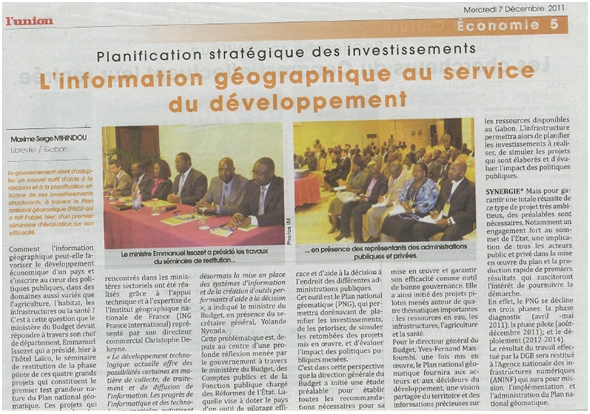 2013 : Agence Nationale des Infrastructures Telecom et des fréquences (ANINF) / Plan National de la Géomatique / Etat gabonais